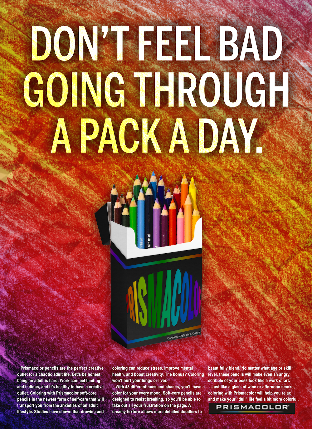 Just like a runner's high or smoking some flower, coloring with Prismacolor pencils will help you relax and release endorphins.